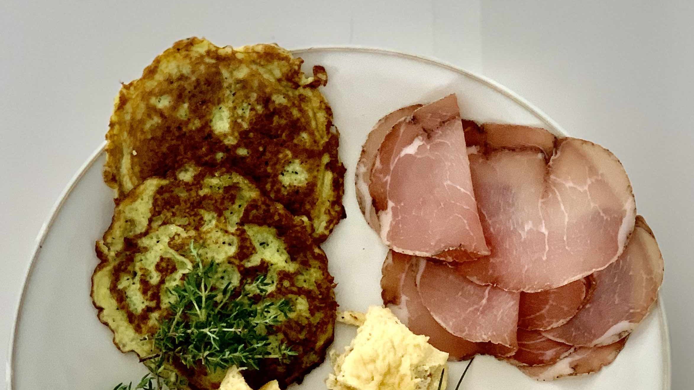 🥒 100 g de courgettes râpées 🥒 40 g d’emmental 🥒 1 œuf 🥒1 CS d’huile d’olive 🥒 thym 🥒sel /poivre.